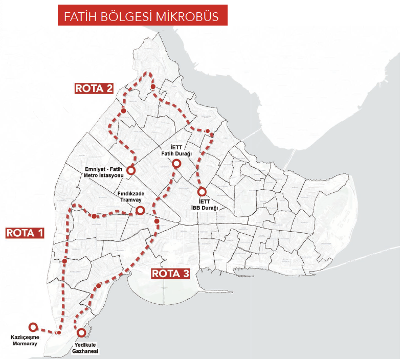 Fatih’in sokaklarına uygun araçlarla mikrobüs toplu taşıma sistemini başlatacağız. Fatihliler ilçe içindeki belediye hizmetlerine, pazarlara, yeşil alanlara, sosyal ve kültürel merkezlere ulaşabilecek. Fatih’in erişilemeyen noktası kalmayacak.